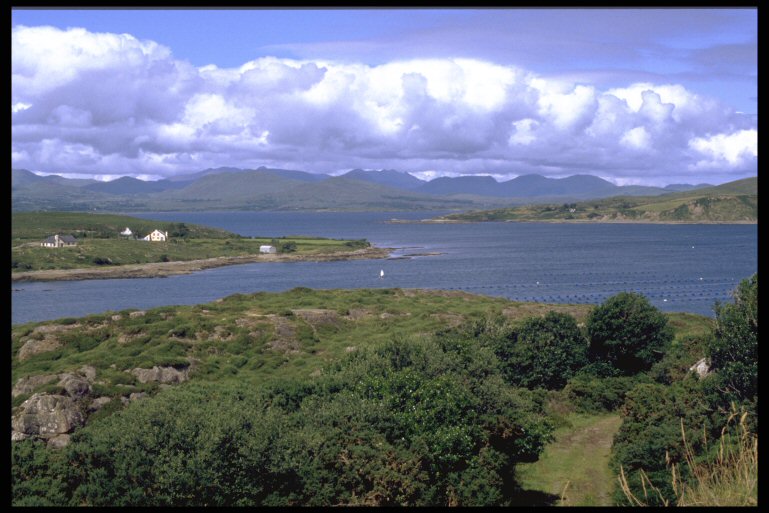 Una veduta del fiordo di Kenmarecon le montagne della penisola di Iveragh sullo sfondo