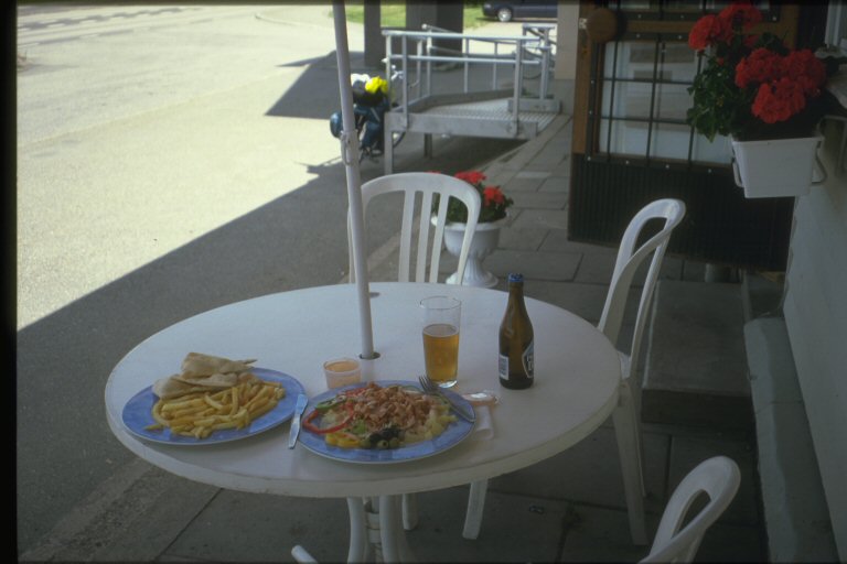Enjoying a hearty meal on the road to Nyköping (yes, that's how you go about it when you have all those miles ahead of you...)